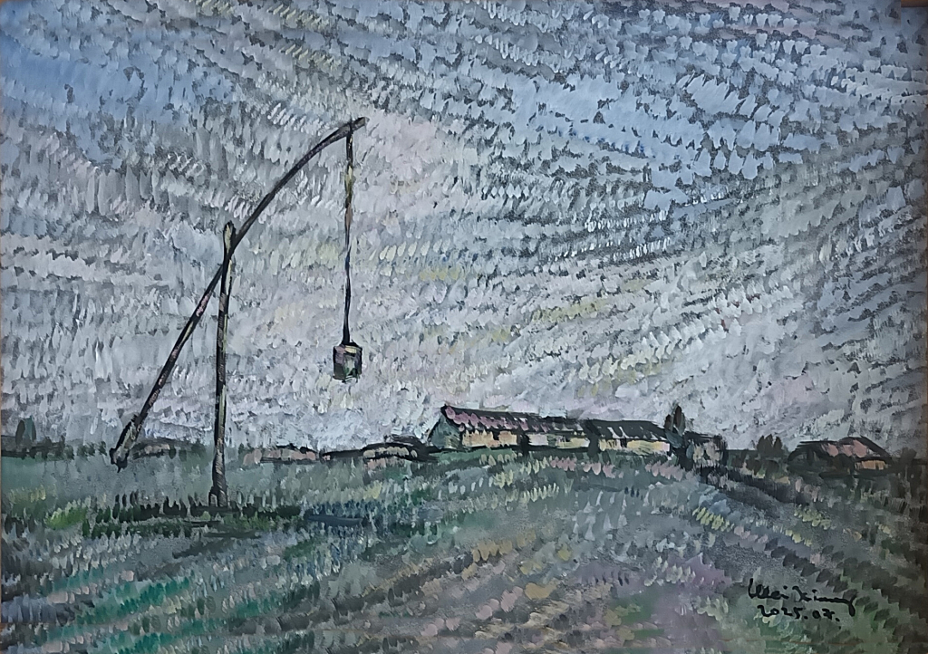 Salamon Árpád: A két gémeskút világa, akril, 40x50 cm